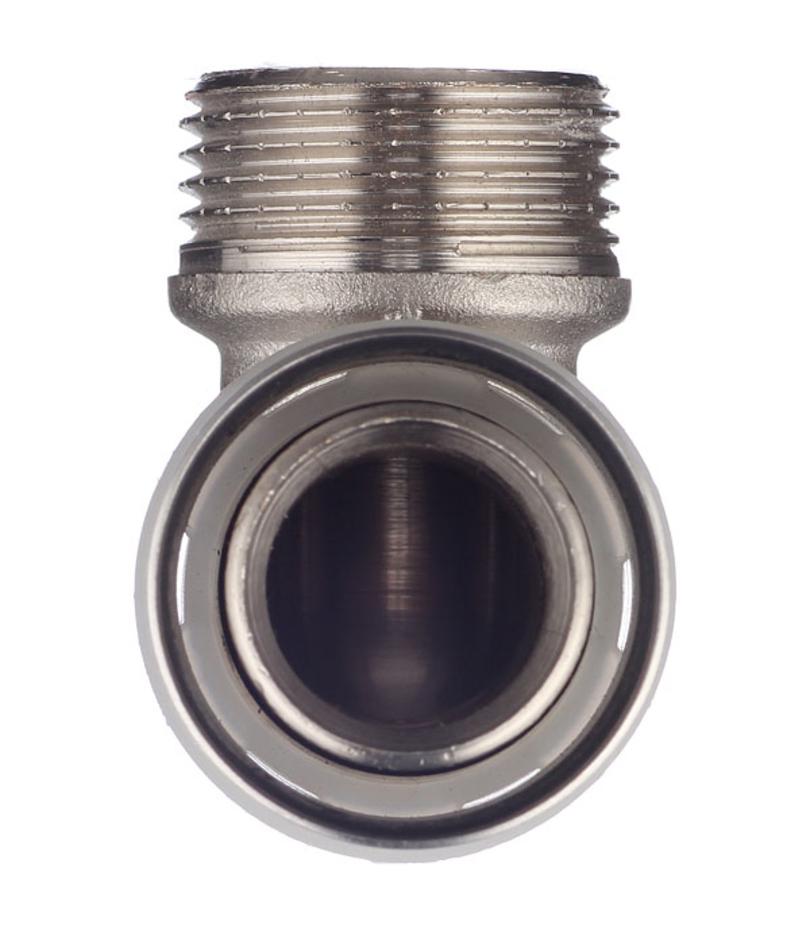 Предназначен для подсоединения к металлопластиковой (металлополимерной) трубе или трубе из сшитого полиэтилена компонента системы с резьбовым подключением. Монтаж соединителя выполняется пресс-инструментом с насадкой «ТН». Состав Никелерованная латунь, пресс-гильза из нержавеющей стали AISI 304, уплотнительные кольца – EPDM. Производитель Италия / Китай.