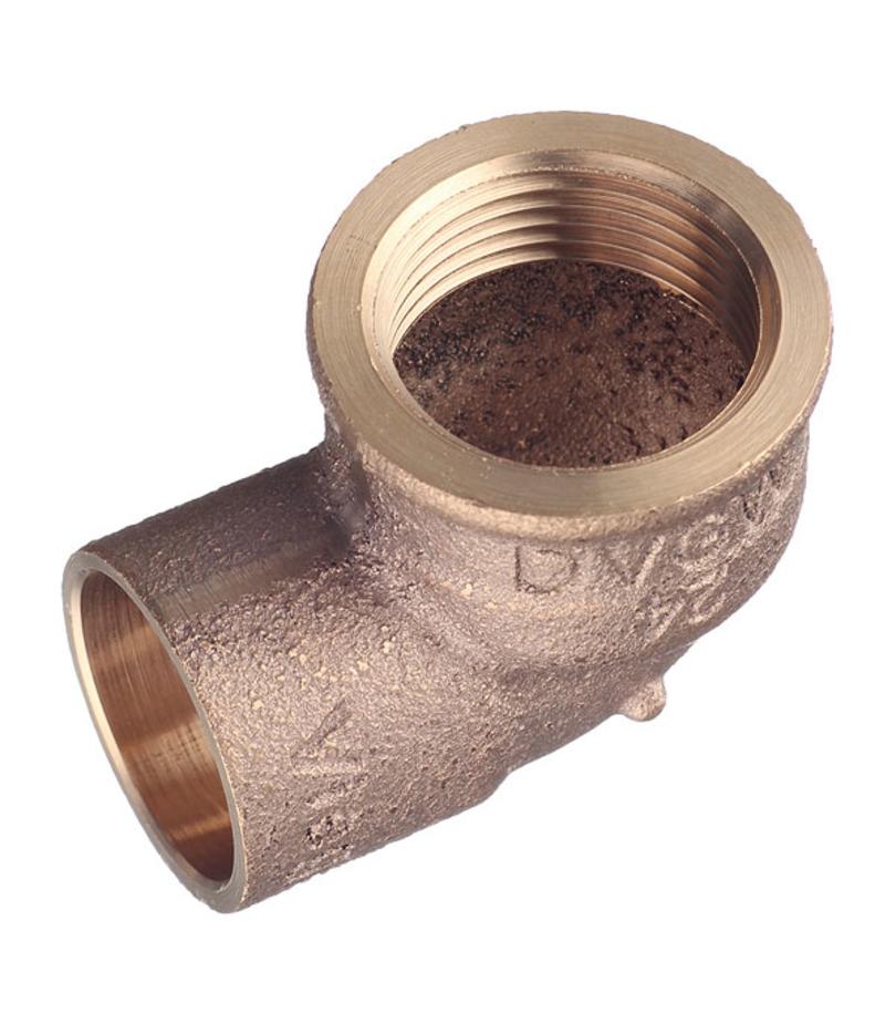 Предназначен для изменения направления медной трубы диаметром 22 мм на 90º с переходом на резьбовое соединение 3/4″ (20 мм) с внутренней резьбой.