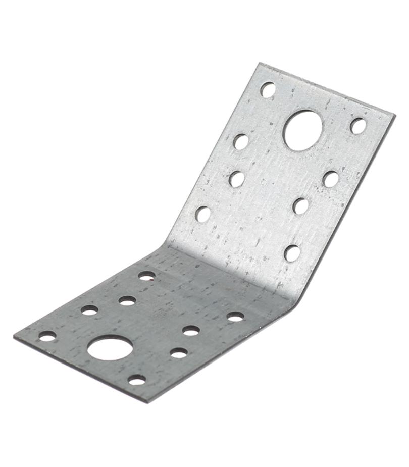 Предназначен для крепления соединительных элементов в стропильных системах под углом 135°. Изготовлен из оцинкованной стали. Имеет отверстия диаметром 5 мм под саморезы или гвозди и 13 мм под болты или штанги с резьбой. Расшифровка маркировки 70 – длина полки уголка в мм, 55 – ширина уголка в мм, 2 мм – толщина.