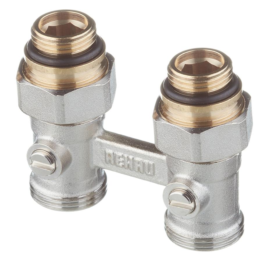 Узел нижнего подключения Rehau (12407271001) прямой 1/2 НР(ш) х 3/4 ЕК НР(ш) для радиатора с шаровыми кранами и накидными гайками