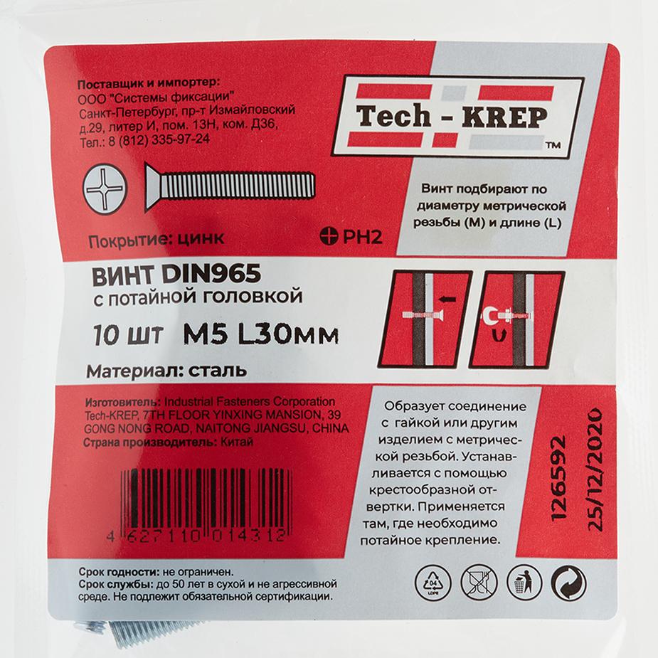 Винт оцинкованный M5x30 мм DIN 965 потайная головка (10 шт.)