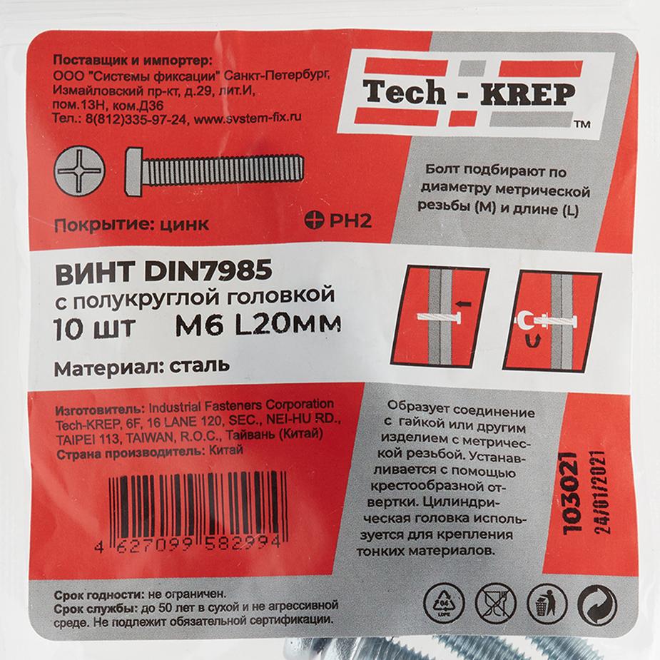 Винт оцинкованный M6x20 мм DIN 7985 полукруглая головка (10 шт.)