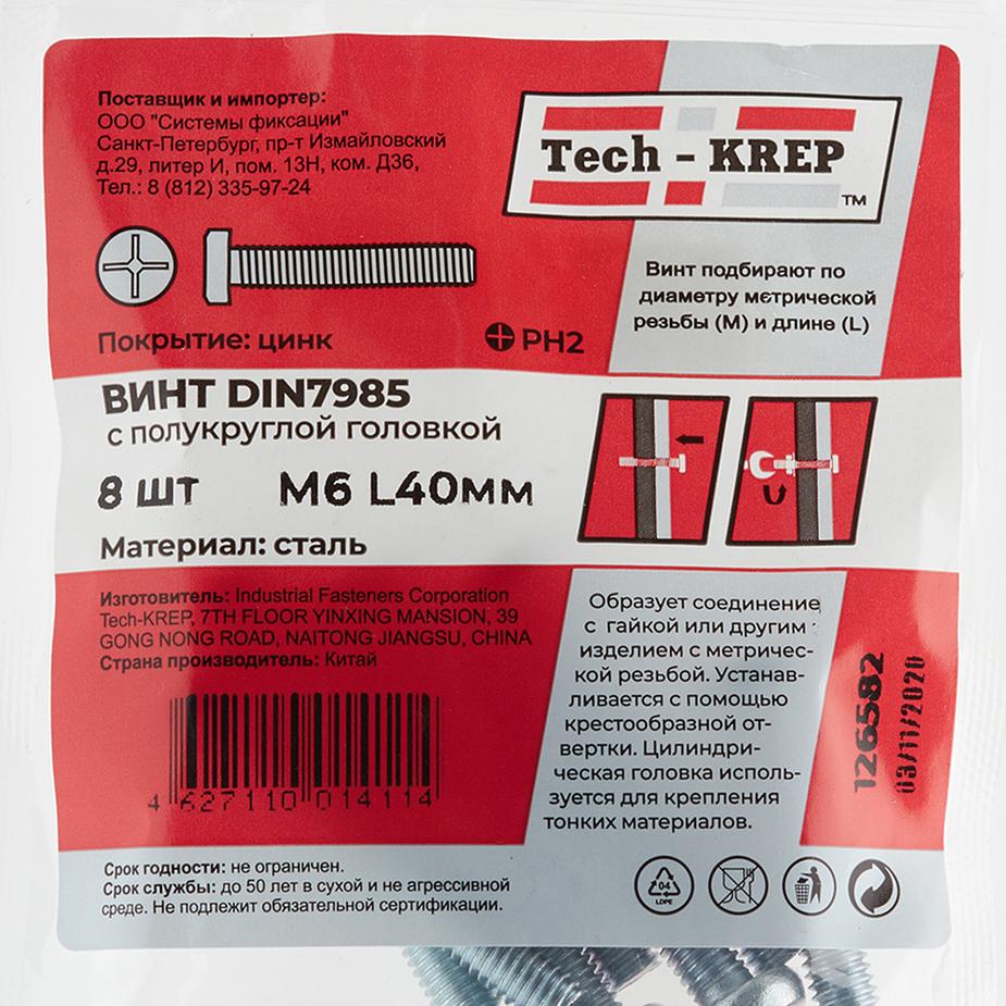 Винт оцинкованный M6x40 мм DIN 7985 полукруглая головка (8 шт.)