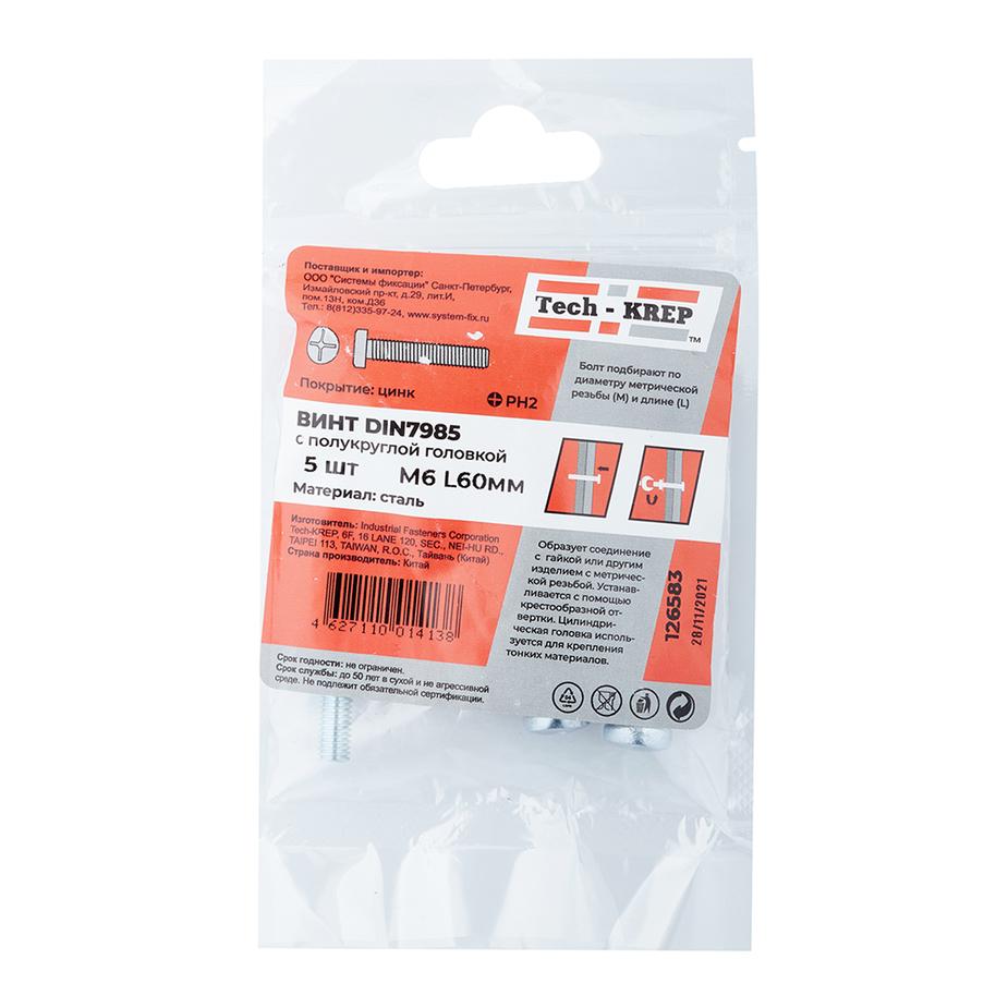 Винт оцинкованный M6x60 мм DIN 7985 полукруглая головка (5 шт.)