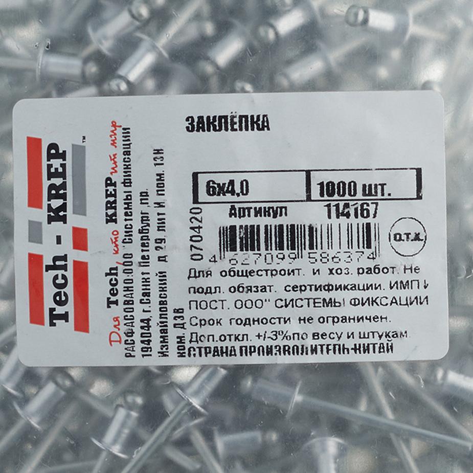 Заклепка вытяжная 4,0×6 мм алюминий/сталь (1000 шт.)