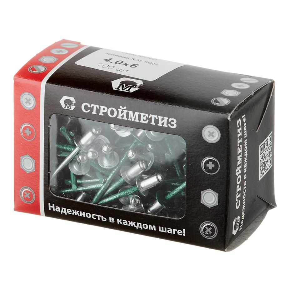 Заклепка вытяжная 4,0×6 мм алюминий/сталь зеленая RAL 6005 (100 шт.)