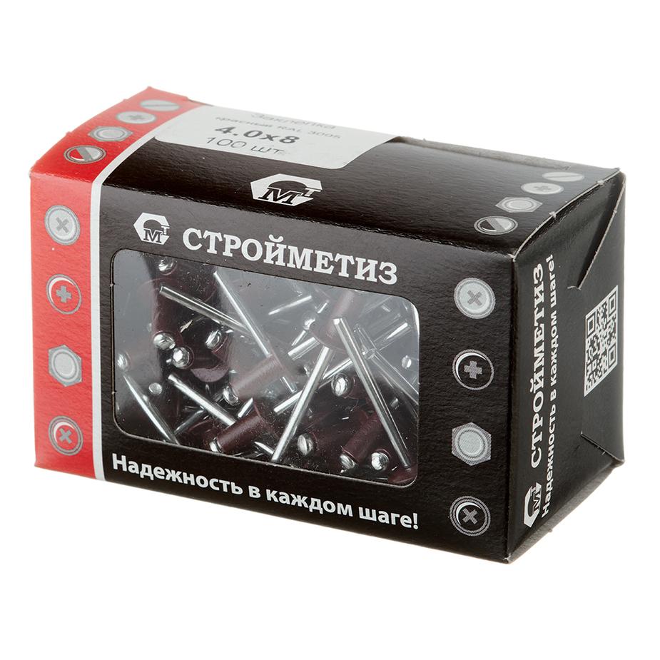 Заклепка вытяжная 4,0×8 мм алюминий/сталь красная RAL 3005 (100 шт.)