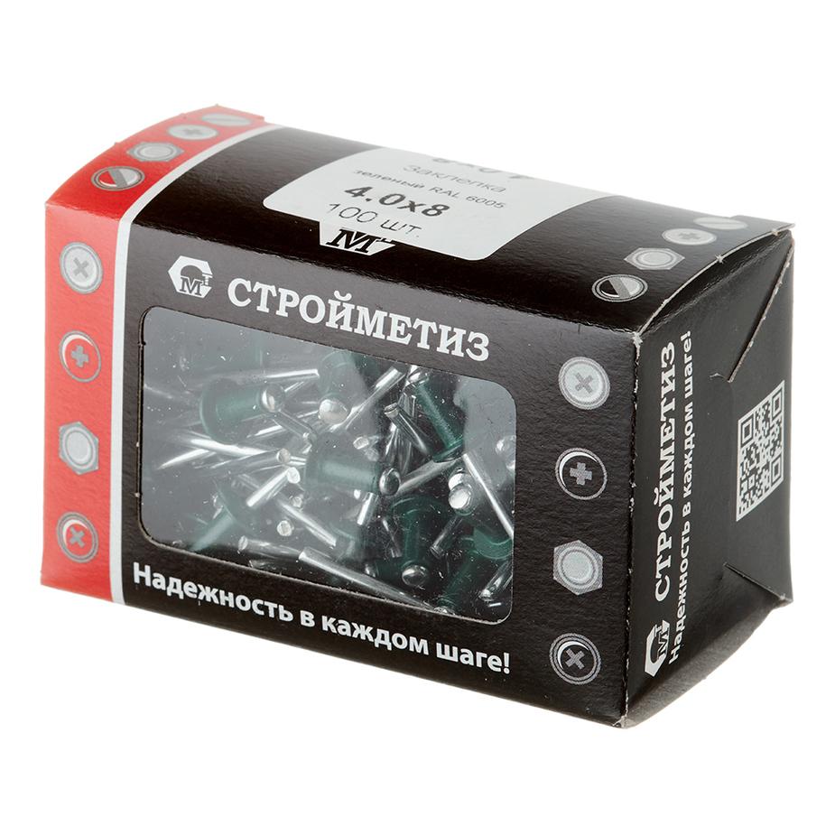 Заклепка вытяжная 4,0×8 мм алюминий/сталь зеленая RAL 6005 (100 шт.)