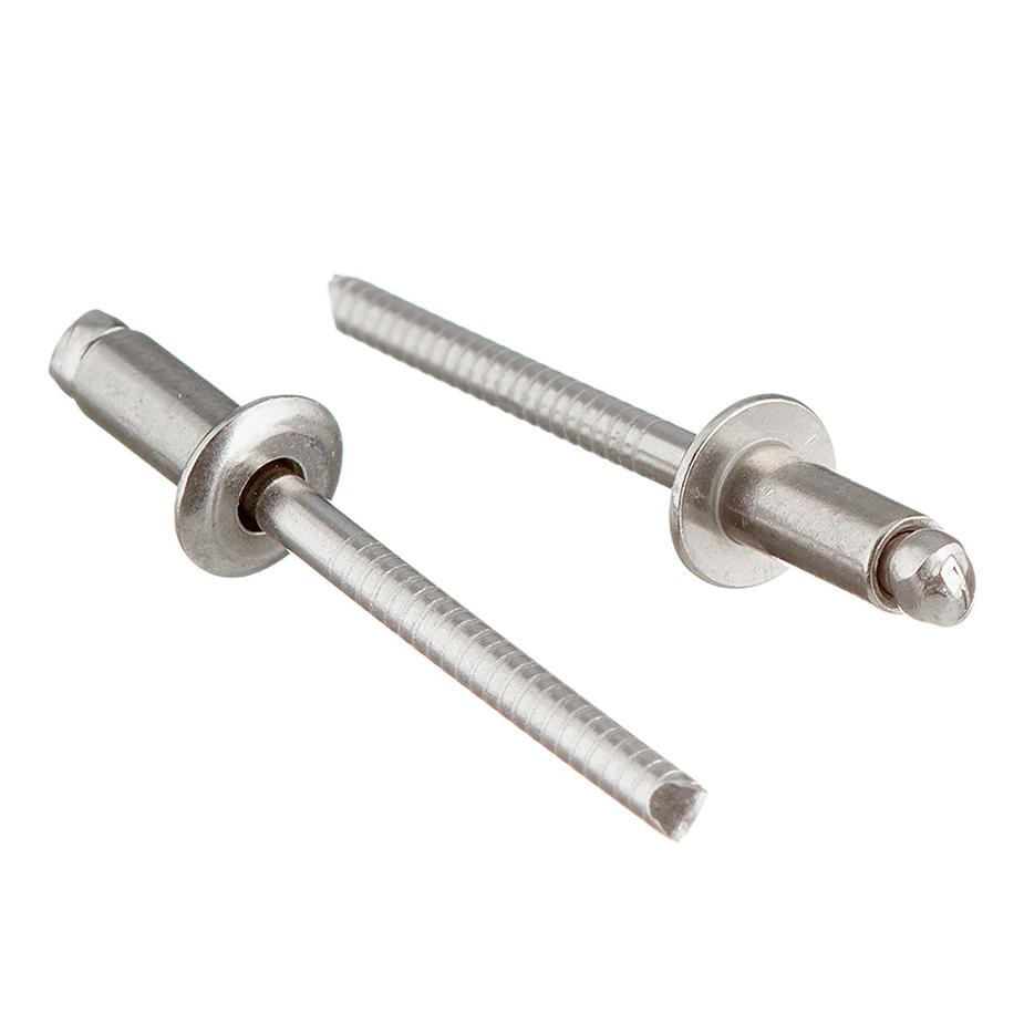 Предназначены для получения надежного неразъемного соединения различных материалов толщиной от 4,5 до 6,5 мм. Вытяжные заклепки удобны тем, что для их установки необходим доступ к скрепляемым поверхностям лишь с одной стороны. Можно применять для наружных и внутренних работ.