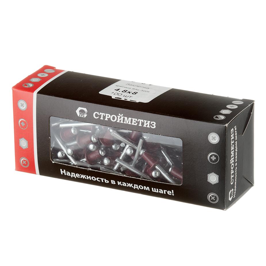 Заклепка вытяжная 4,8×8 мм алюминий/сталь красная RAL 3005 (100 шт.)