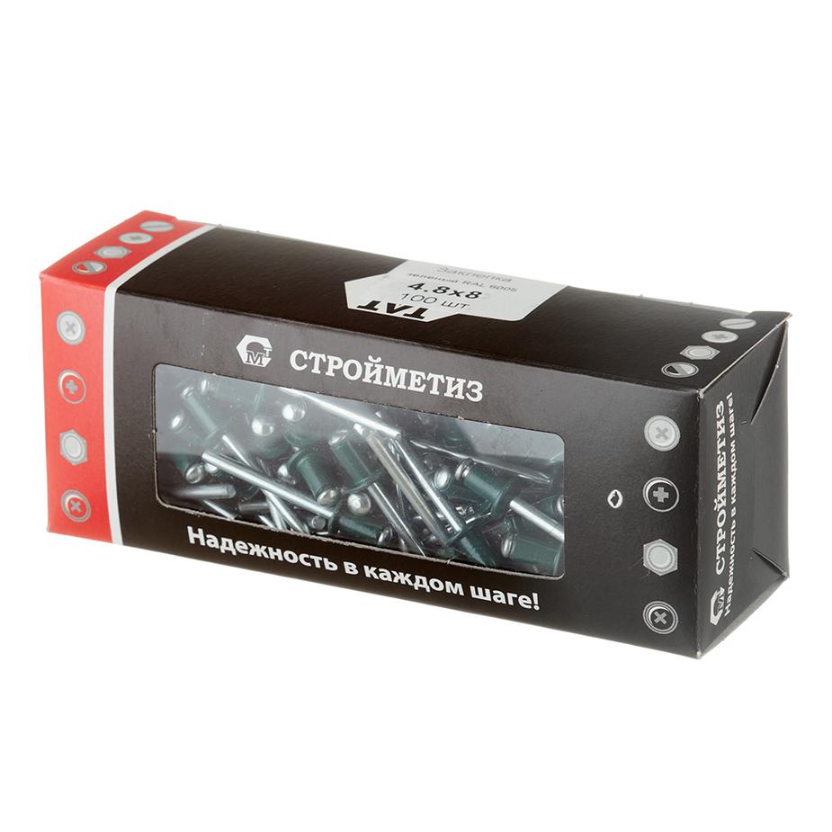 Заклепка вытяжная 4,8×8 мм алюминий/сталь зеленая RAL 6005 (100 шт.)